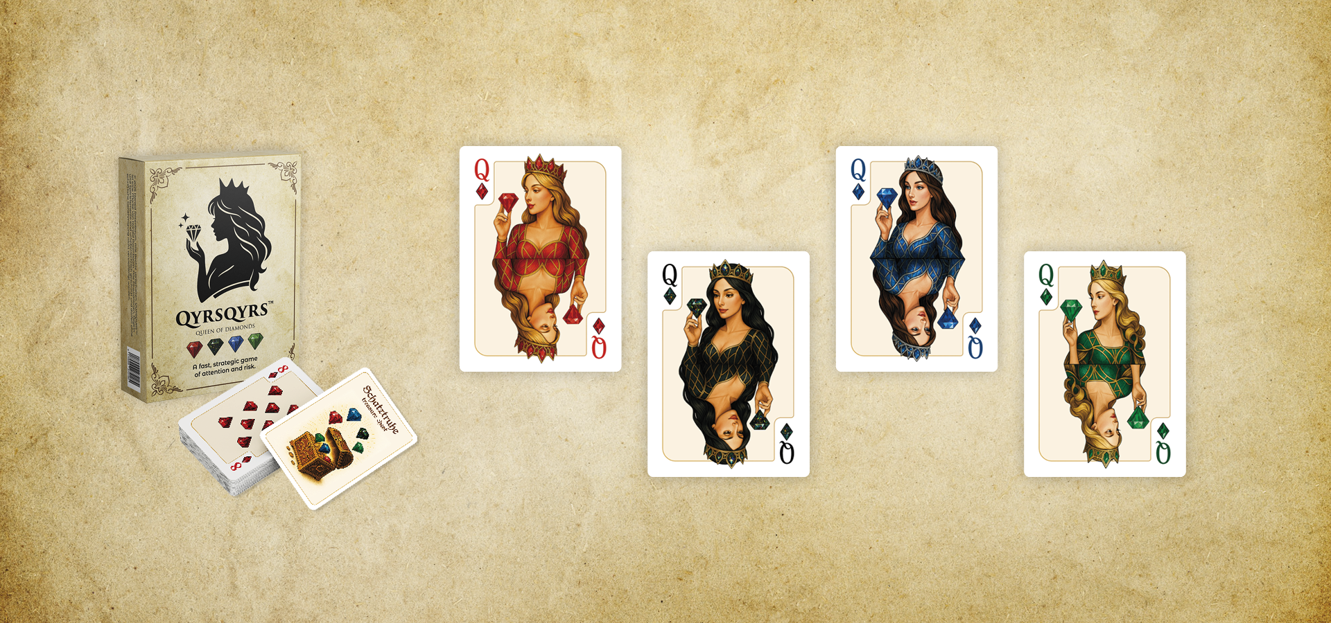 Ich habe QYRSQYRS – Queen of Diamonds entwickelt, weil ich schnelle, taktische Kartenspiele liebe, die ihre Spieler immer wieder überraschen.